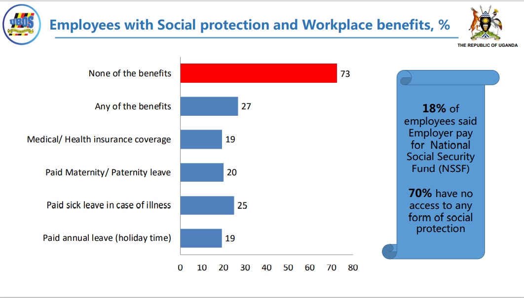Only 18% of employees said the employer pays for the National Social Security Fund (NSSF) while 70% have no access to any form of social protection.