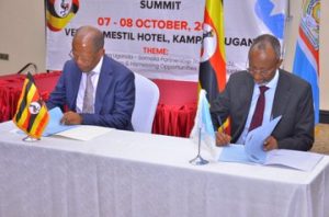 Uganda and Somalia have deepened their bilateral ties with the signing of three new Memoranda of Understanding (MoUs) on Security, Immigration, and Education, during the Second Uganda–Somalia Joint Permanent Commission (JPC) and Investment and Business Summit held at Mestil Hotel in Kampala.
