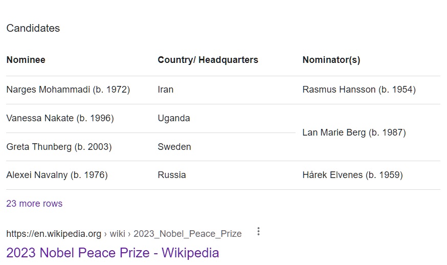 SoftPower News cross-checked with Wikipedia’s potential 2023 candidates and nominations confirmed by various News Agencies.