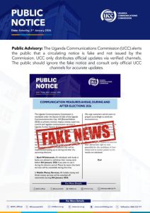 ” The Uganda Communications Commission (UCC) alerts the public that a circulating notice is fake and not issued by the Commission. UCC only distributes official updates via verified channels.”