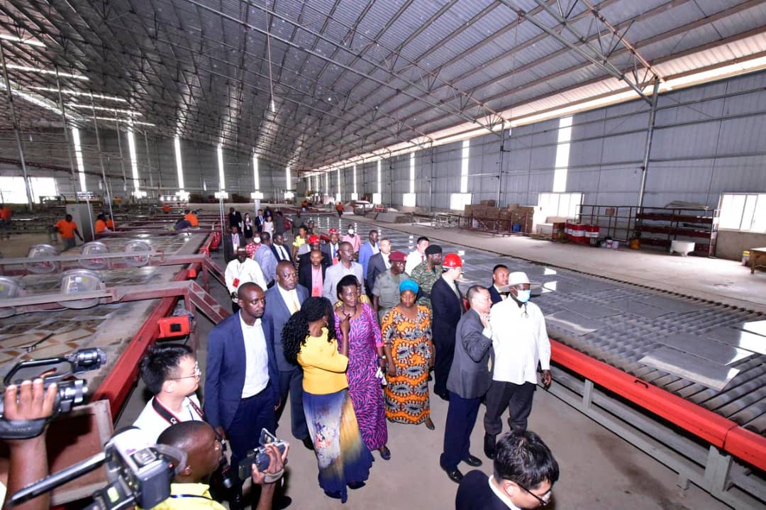 President Museveni and Government officials tour Goodwill Ceramic Tiles in Liao Shen Industrial Park, Nakaseke (File Photo)