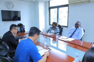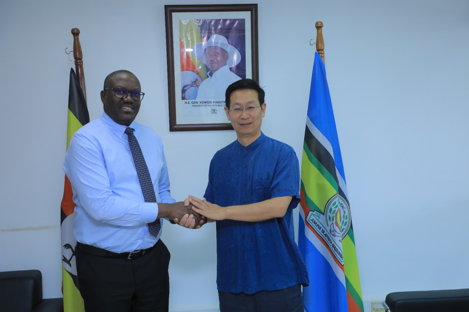 MOFA PS Mr Vincent Bagiire Waiswa Poses for a Handshake Photo With Ambassador Zhang Lizhong, the Ambassador of China to Uganda