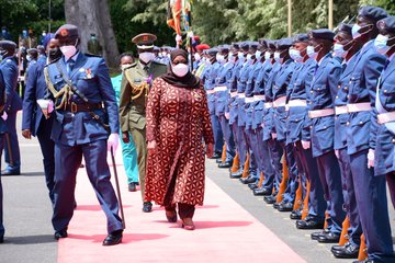 She was received at State House, Entebbe, by her host, Museveni. Her Excellency was accompanied by Ministers and other Senior Government Officials from the United Republic of Tanzania.
