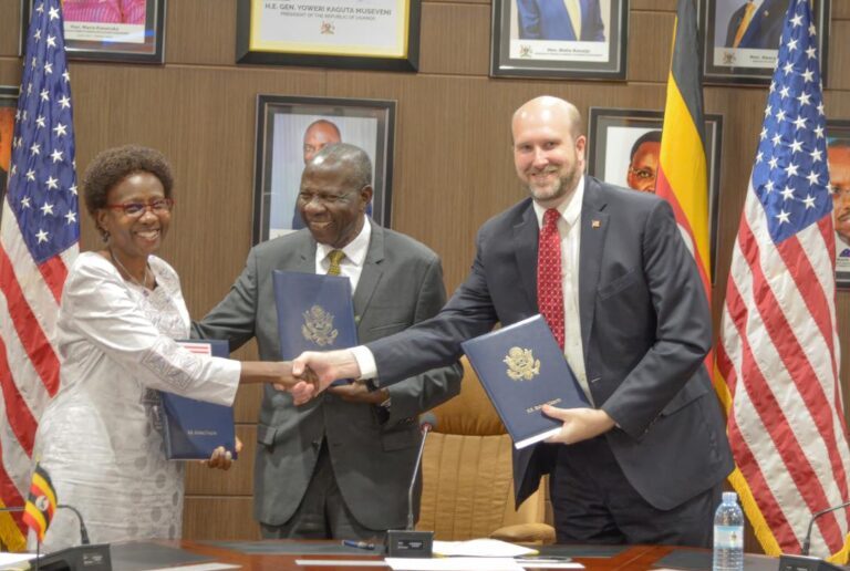 Finance Minister Matia Kasaija signed on behalf of the Government of Uganda, while the American Ambassador to Uganda, H.E. William W. Popp, signed on behalf of the United States of America.