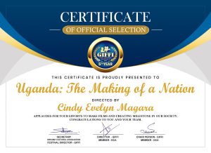 The “Uganda: The Making of a Nation” segment was nominated in Category 22: Documentary (Foreign) – Other Continents alongside films from Spain, Australia, and Colombia. An Official Certificate of Selection issued by the Dreamz Cultural Association, the organisers of the GIFFI Film Festival, applauds the ‘Tuko Pamoja’ team for their efforts “to make films and create milestones in our society.”