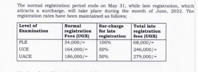 Uganda National Examinations Board (UNEB) has appealed to parents and guardians to endeavour to pay for the registration of the potential candidates, before the end of the first deadline, to avoid paying a surcharge.