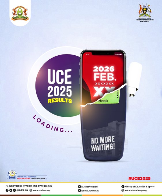The Uganda National Examinations Board (UNEB) will release the 2025 Uganda Certificate of Education (UCE) results on Friday, February 13, 2026, at 11:00 AM at State House, Nakasero.