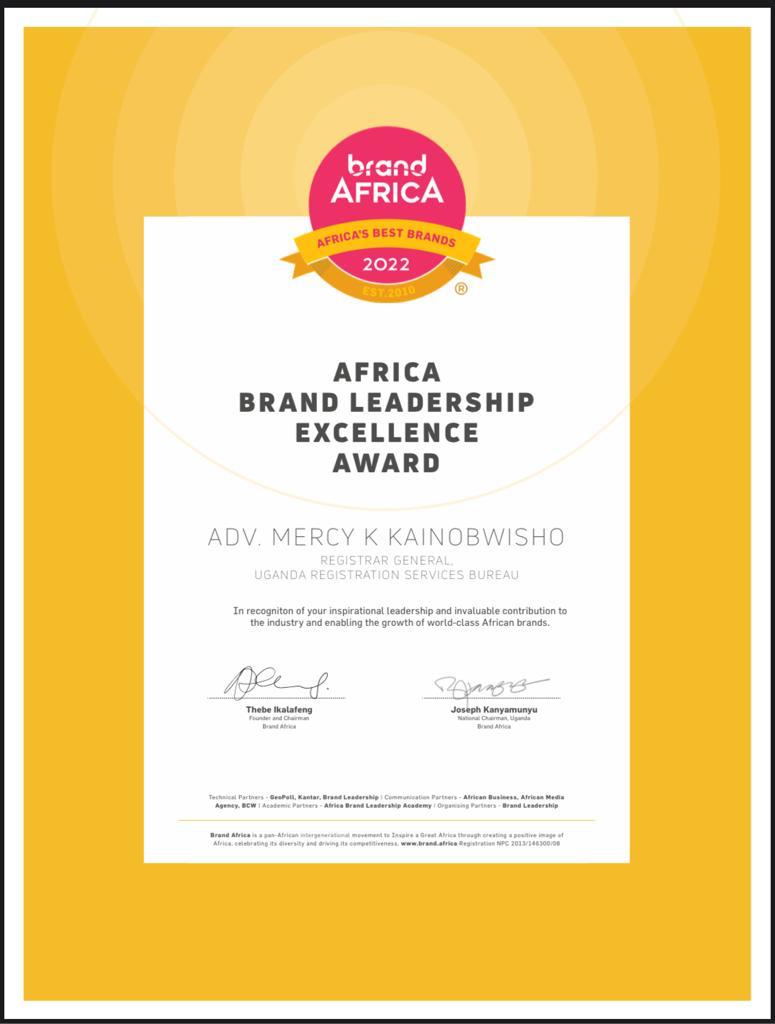 The URSB Team Leader while receiving her latest award said she was thrilled with the recognition, but also thanked Brand Africa for the recognition. “I am extremely happy to receive the inaugural Brand Leadership Excellence Award. It is nothing less than an absolute honor, and I must admit it took me aback. I am grateful for being recognized and I intend to live up to the level of professionalism this award demands,” Kainobwisho said