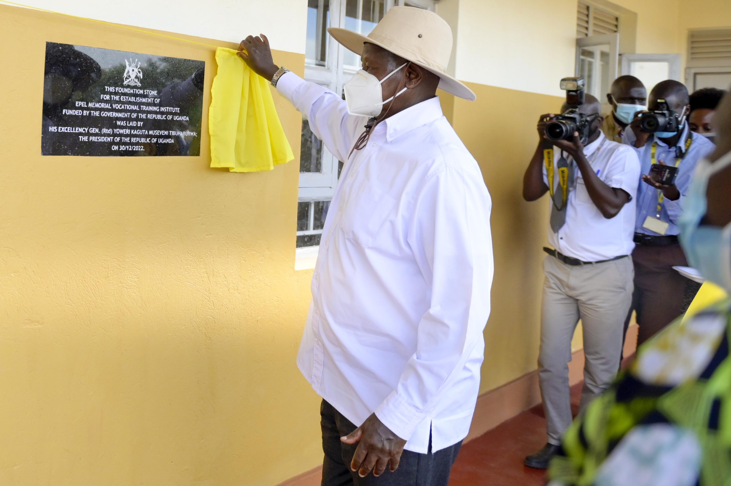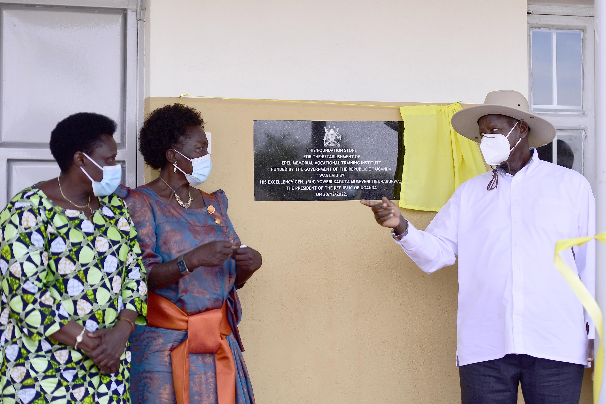 President Museveni had earlier on arrival commissioned the Technical School built in memory of the late Epel the father of Vice President Jessica Alupo.